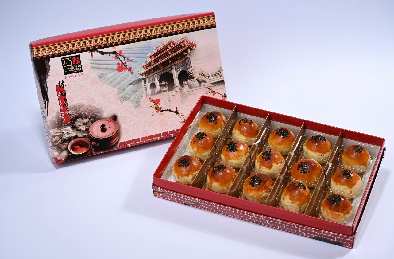以傳統和創新做法蛋黃酥,多層次蛋黃酥皮,包裹著金黃蛋黃,香醇可口。